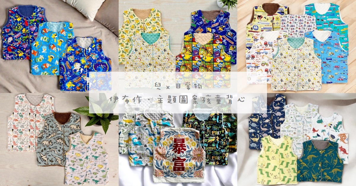 兒 x 日常物|伊布作.主題圖案孩童背心。寶可夢.恐龍.交通工具